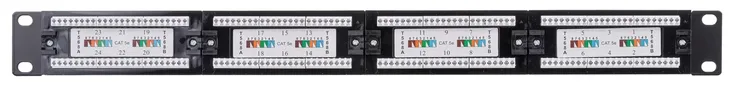 Network patch panel posiada złącza RJ45. Styki złącz są pozłacane. Zapewniają najwyższą jakość pracy dla >1200 cykli. Urządzenie zapewnia szybkie i niezawodne podłączenie urządzeń do sieci komputerowej. Gniazda są kompatybilne z wszystkimi rodzajami patchcordów zakończonych wtykami RJ45 (np CAT5E, CAT 6, CAT 6A, CAT7). Najlepszy efekt uzyskuje się stosując patchcordy tej samej kategorii, co urządzenie lub wyższej.